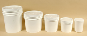 Photo Note: Buckets shown from left to right are: 5 gallon, 3.5 gallon, 2 gallon, 1 gallon and 87 oz.